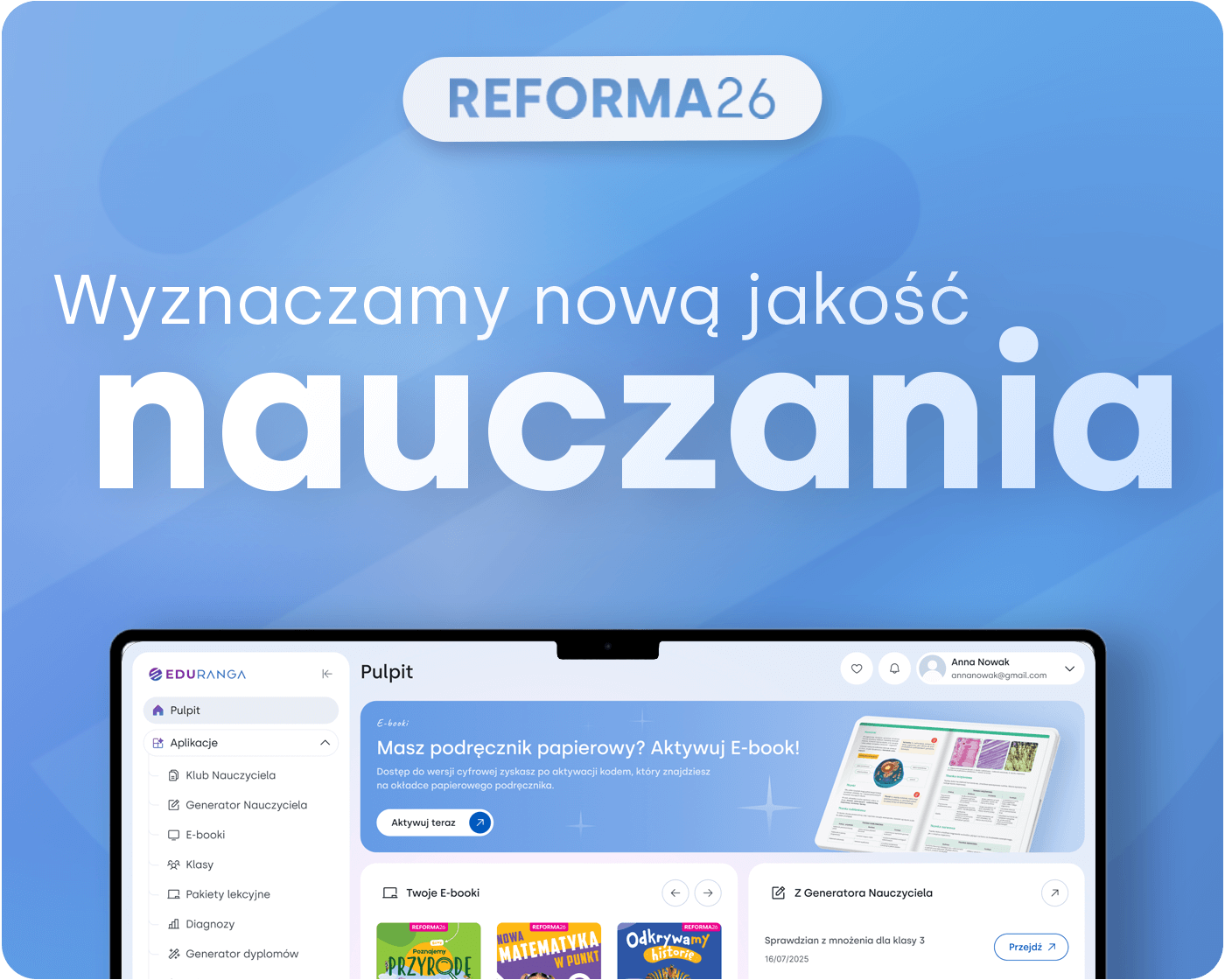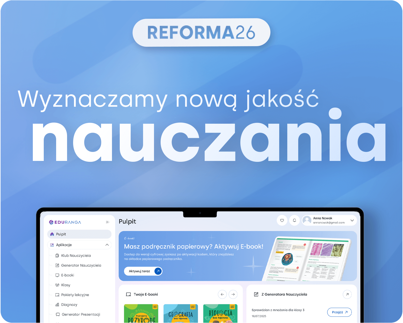 a) wysyłki informacji handlowych dotyczących oferty WSiP, przekazywanych za pomocą telekomunikacyjnych urządzeń końcowych oraz tzw. automatycznych systemów wywołujących, na podany do tego celu adres e-mail. Powyższe informacje będziemy wysyłać do czasu wycofania zgody, poprzez kliknięcie w link dezaktywacyjny, który znajduje się w stopce przesyłanych wiadomości e-mail lub poprzez kontakt z nami.