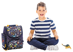 Z której strony chłopca stoi plecak?