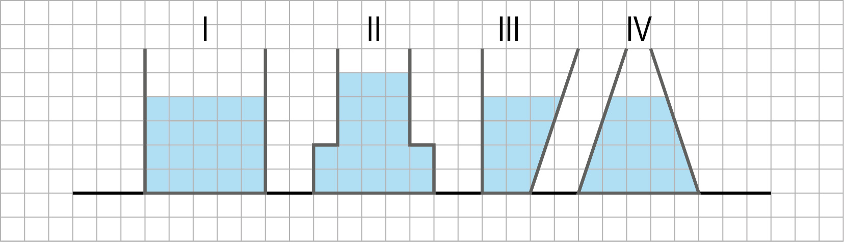 Na ilustracji przedstawiono cztery naczynia, w których znajduje się woda.