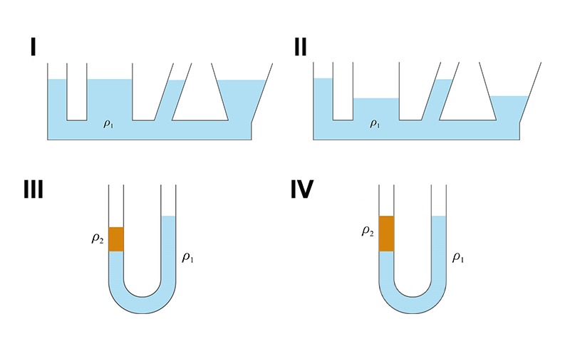 Na którym rysunku poprawnie przedstawiono zachowanie cieczy w naczyniach połączonych?