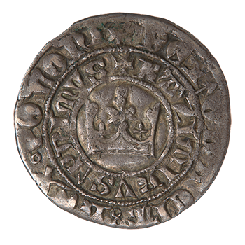 Ilustracja przedstawia srebrną monetę zwaną groszem krakowskim. Który z polskich władców zaczął jako pierwszy wybijać pieniądz tego rodzaju?